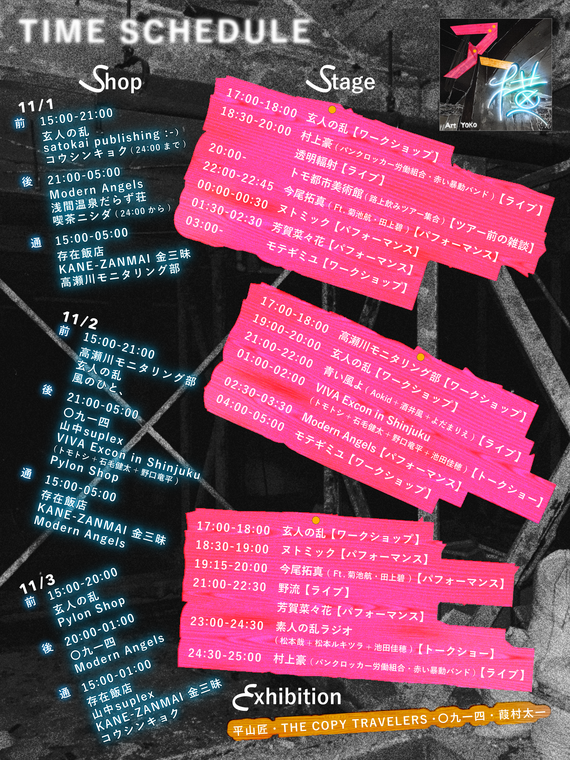 日時:全日(11/1(土)15:00-5:00/11/2(日)15:00-5:00/
